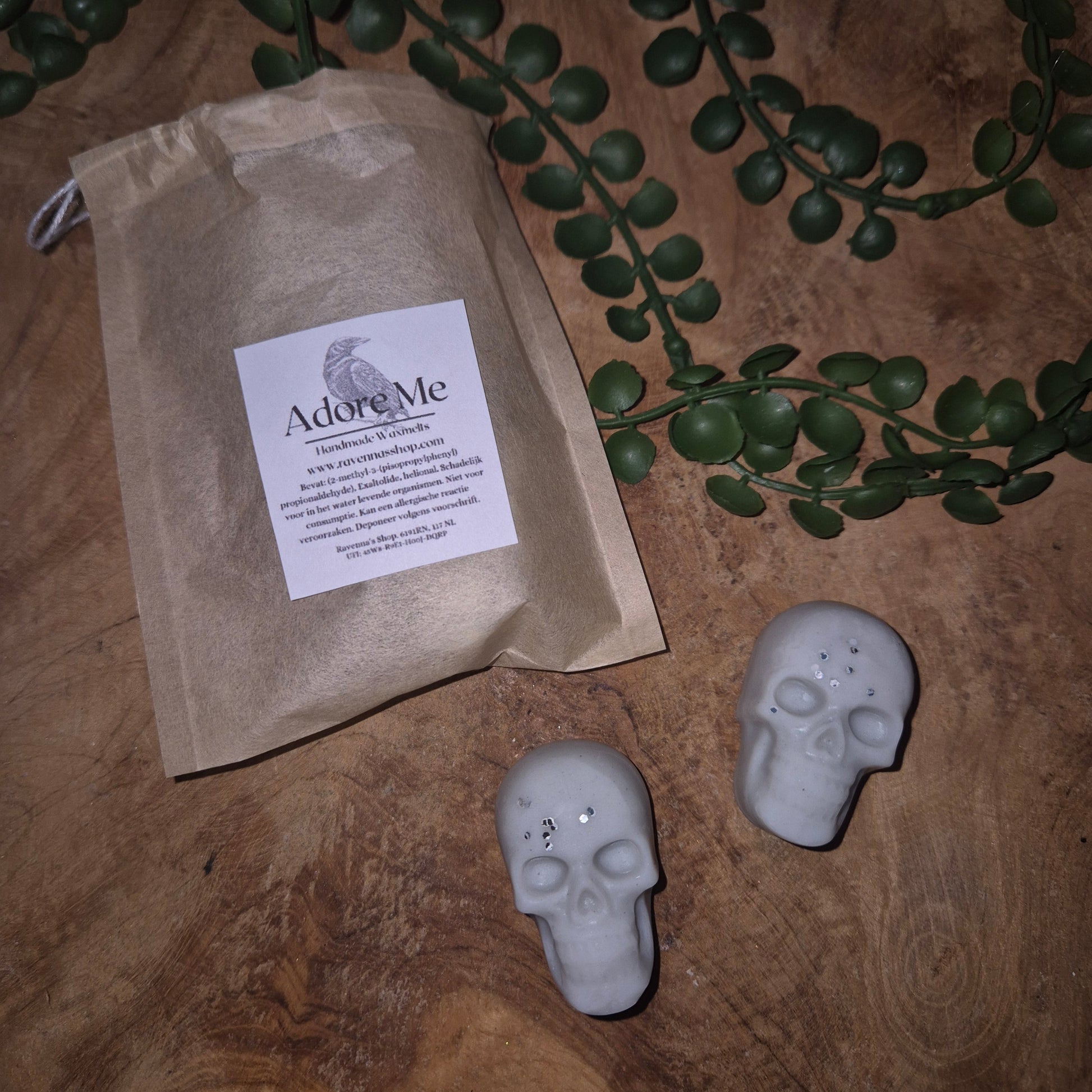 - Een biologisch afbreekbaar zakje met twee schedels van 8-9 gram per stuk