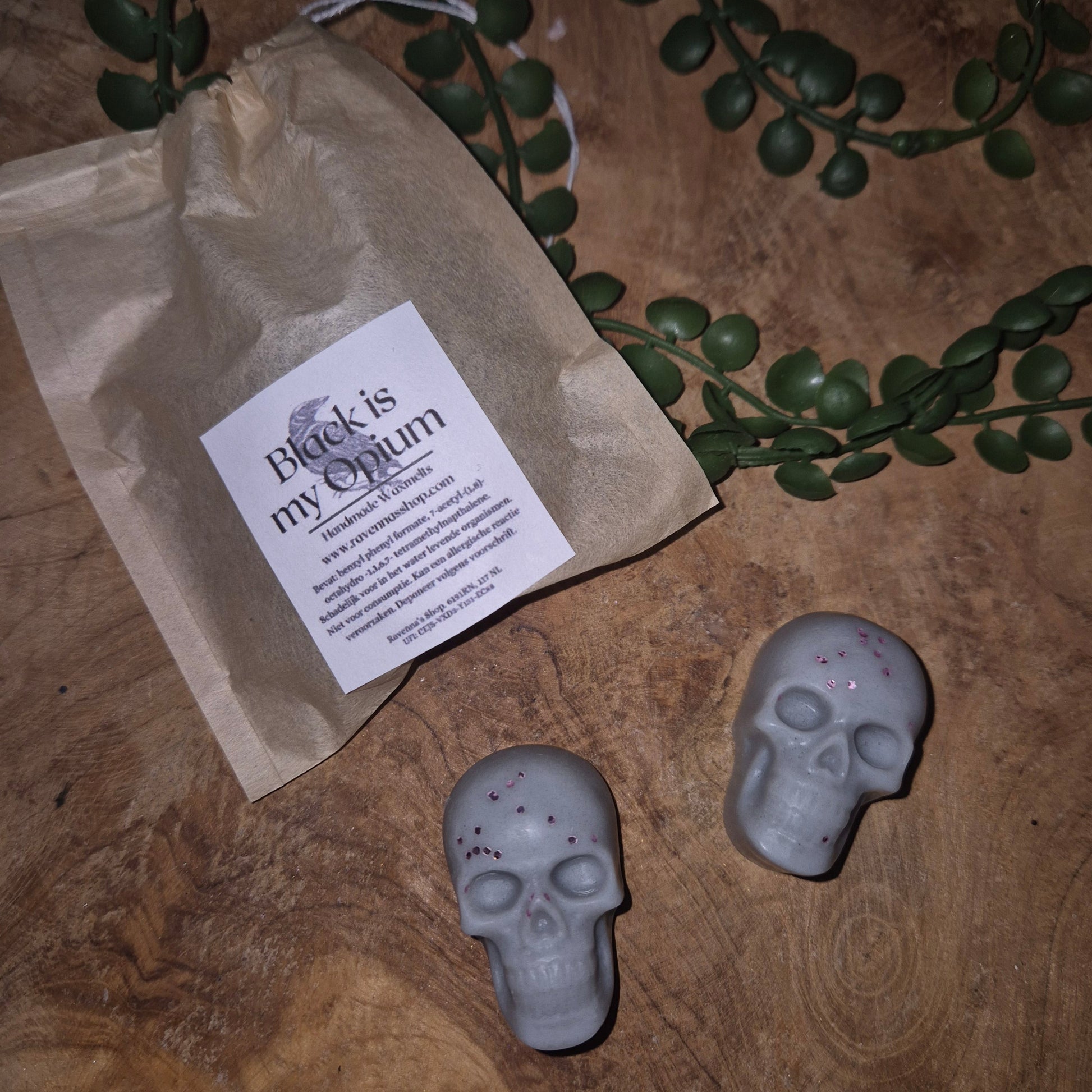 - Een biologisch afbreekbaar zakje met twee schedels van 8-9 gram per stuk