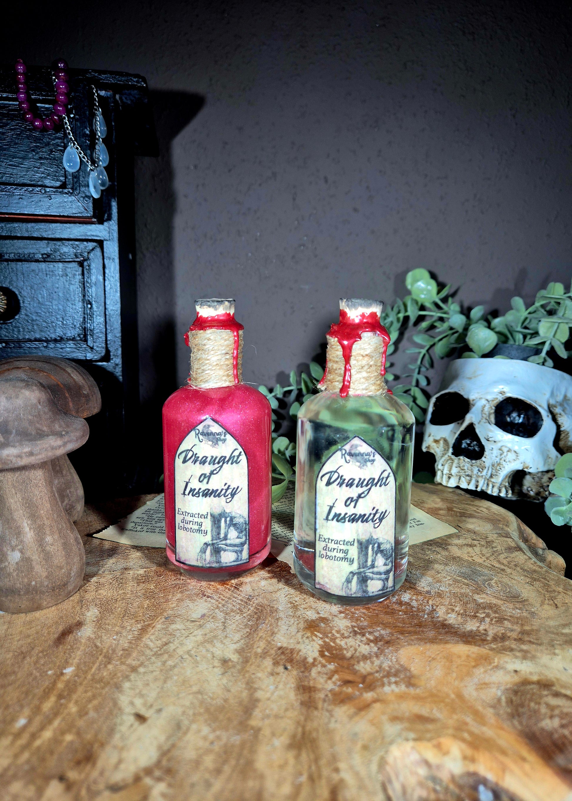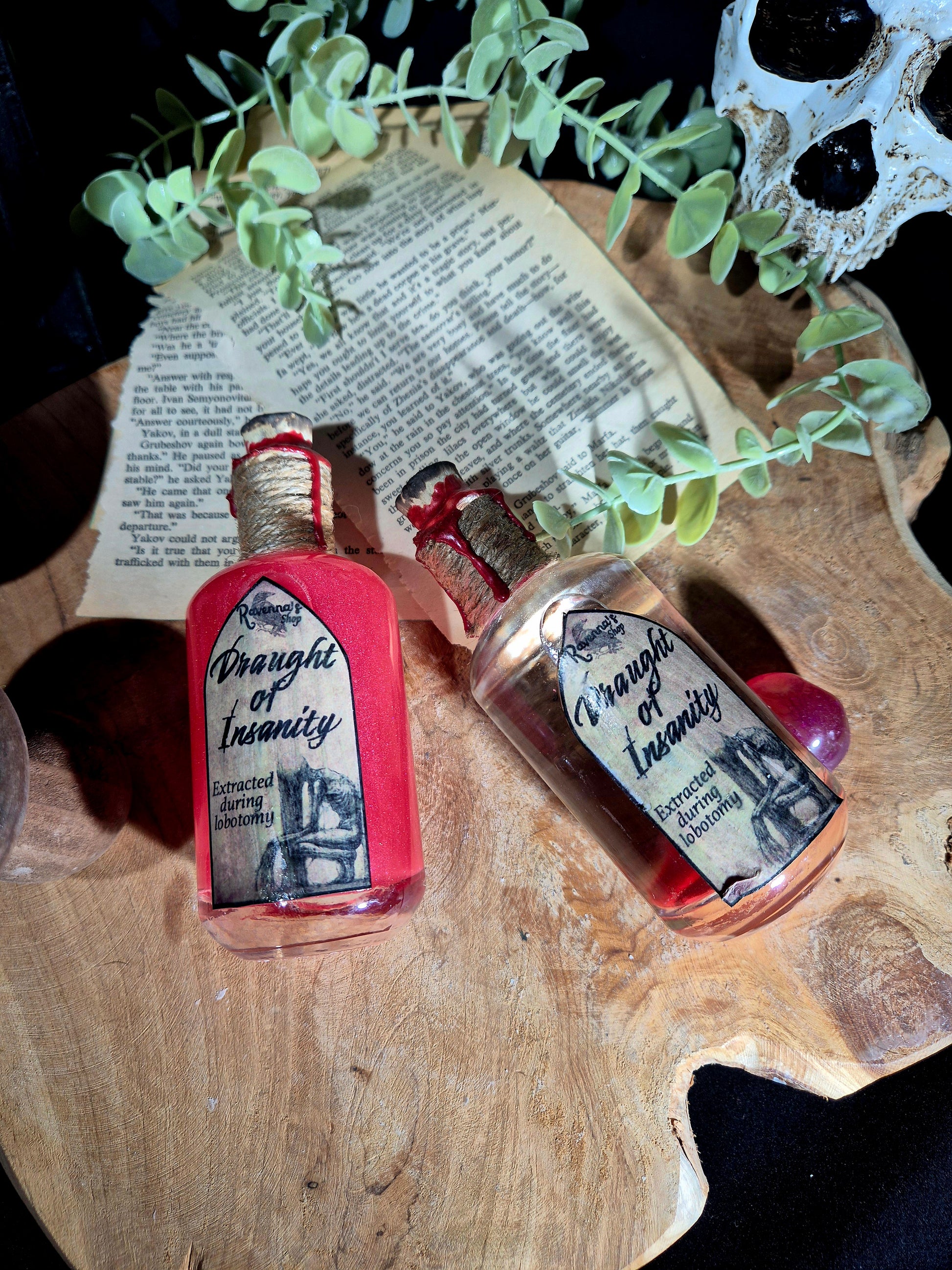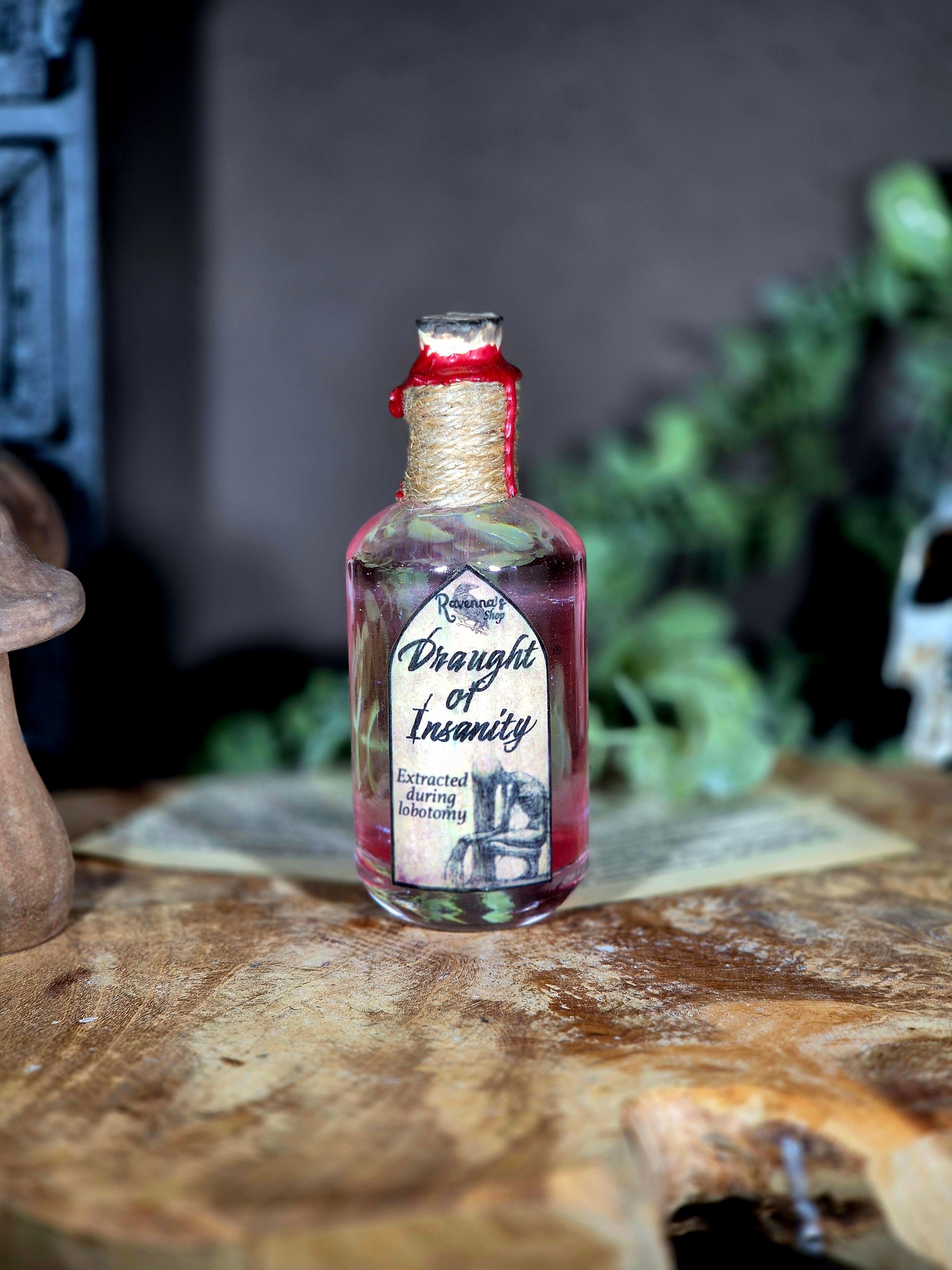 Tijdens een lobotomie hebben wij uiterst voorzichtig en met duistere precisie "The draught of insanity" geëxtraheerd. Breek de rode seal niet!